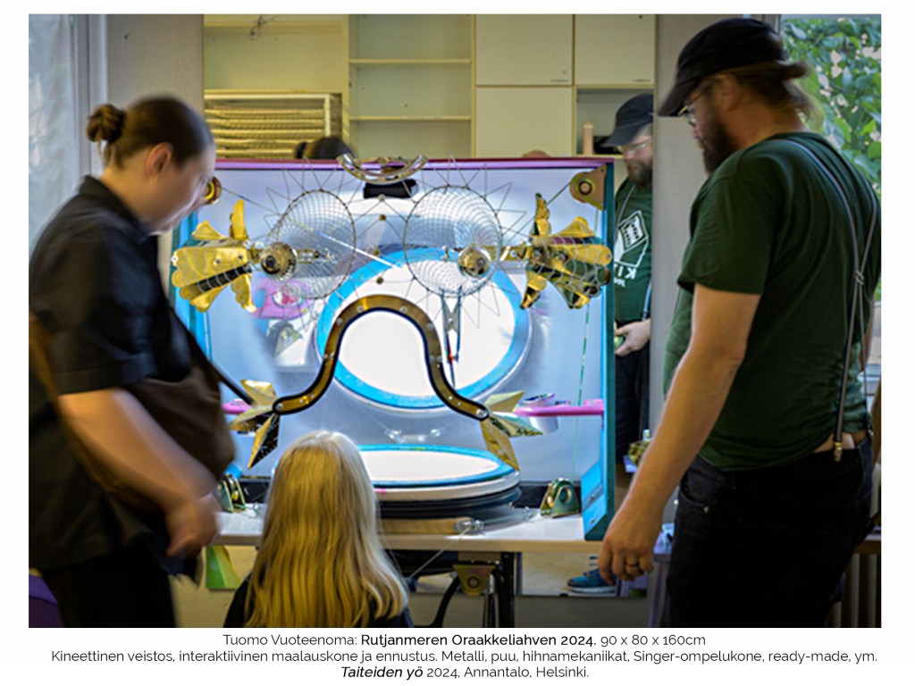 This is the page of Tuomo Vuoteenoma. I’m mostly building kinetic art & performative sculptures in KITA – The House of Kinetic Arts in Joutsa, Finland. I work through mixed waste method, as my artistic ideas are usually inspired by discarded material, cultural layers and absurd social circumstances.