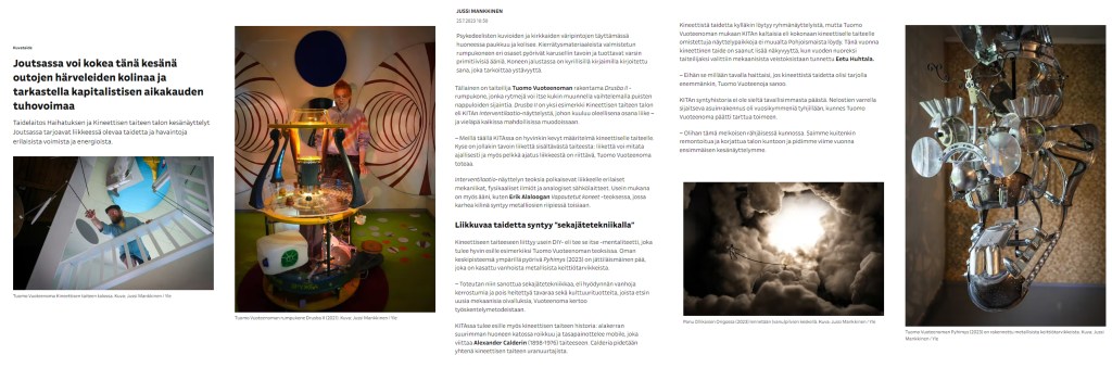 YLE (Finnish Broadcasting Company) 16.7.2022 The House of Kinetic Arts KITA in Finnish national media.