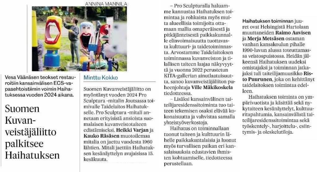 KSML 17.6.2024 Pro Sculptura – Haihatus & KITA receive big annual award of Finnish Sculptor Association.