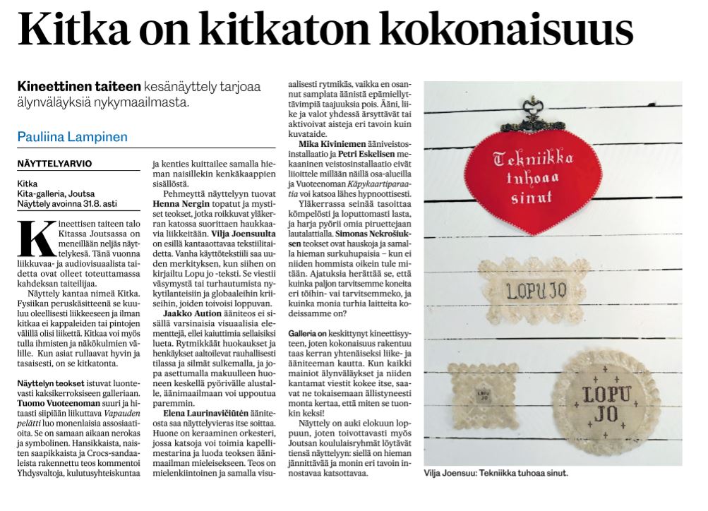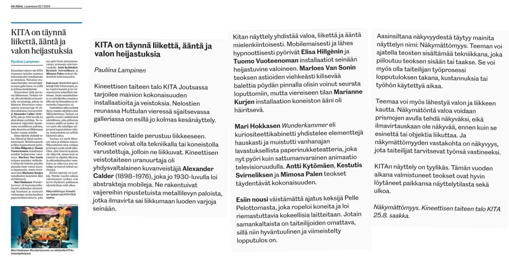 KITA & Haihatus 2025 exhibitions preview in Keskisuomalainen 28.6.2025