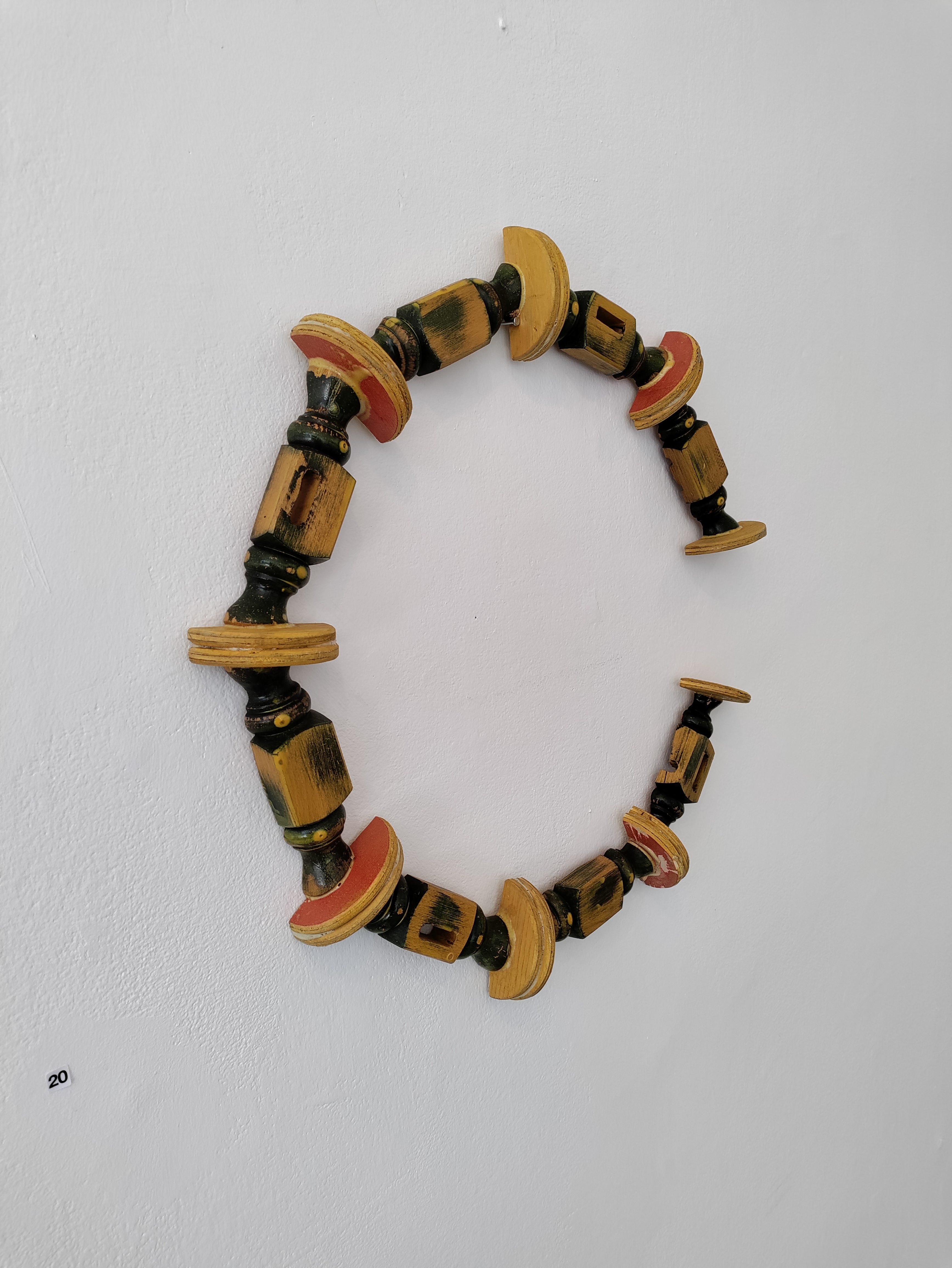 Ragnile universe is an ongoing process and it finds different forms of exhibitions with no hurry. The entity consists of different categories. For example Bisnonna is a kinetic sculpture – the ancient origin of all weaving. Whilst constructing it, I have caught the forms and the abstract ideas for the actual Ragnile -sculptures. The third part is a infomercial video, which scrutinises sculpture as an form of art, merchandise and an object in our environment. At the end, every aspect of the Ragnile world interconnect with the sci-fi story flowing underneath all objects and matters. I hope I some day manage to finish and publish the radio theatre I’ve written.